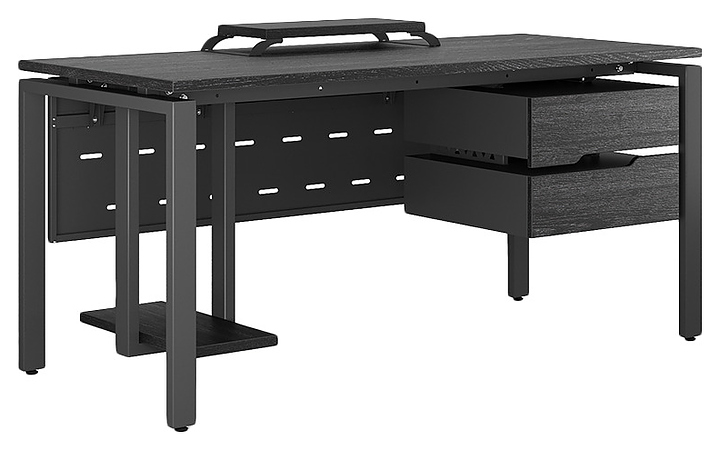 Офисный стол Кобор P-180/80 black/glazed используется в офисных помещениях и кабинетах руководителей. Модель оснащена П-образными опорами. Каркас выполнен из металла, выкрашенного в цвет черный муар (RAL9005), столешница – из ламинированной древесно-стружечной плиты (ЛДСП) цвета черный дуб (H3178 ST37). Опции (заказываются отдельно):