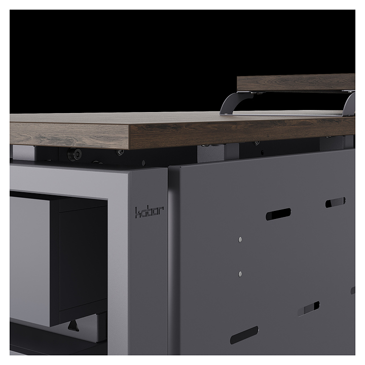 Офисный стол Кобор P-160/70 graphite/charlston используется в офисных помещениях и кабинетах руководителей. Модель оснащена П-образными опорами. Каркас выполнен из металла, выкрашенного в цвет графит муар (RAL7024), столешница – из ламинированной древесно-стружечной плиты (ЛДСП) цвета дуб чарльстон (H3154 ST36). Опции (заказываются отдельно):
