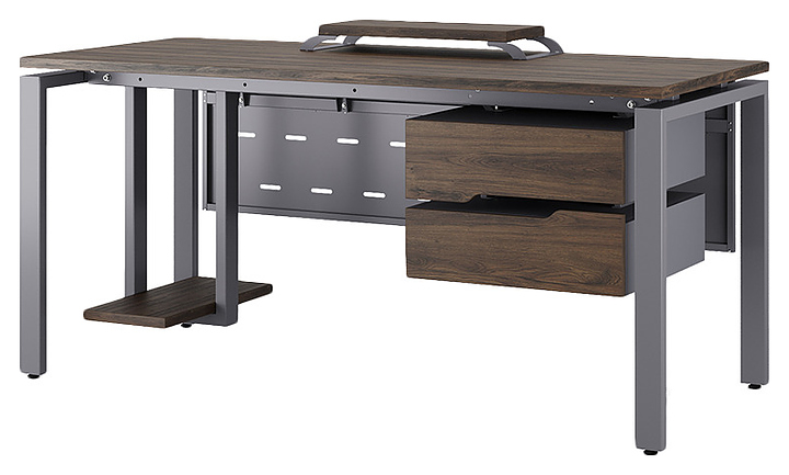 Офисный стол Кобор P-180/70 graphite/charlston используется в офисных помещениях и кабинетах руководителей. Модель оснащена П-образными опорами. Каркас выполнен из металла, выкрашенного в цвет графит муар (RAL7024), столешница – из ламинированной древесно-стружечной плиты (ЛДСП) цвета дуб чарльстон (H3154 ST36). Опции (заказываются отдельно):