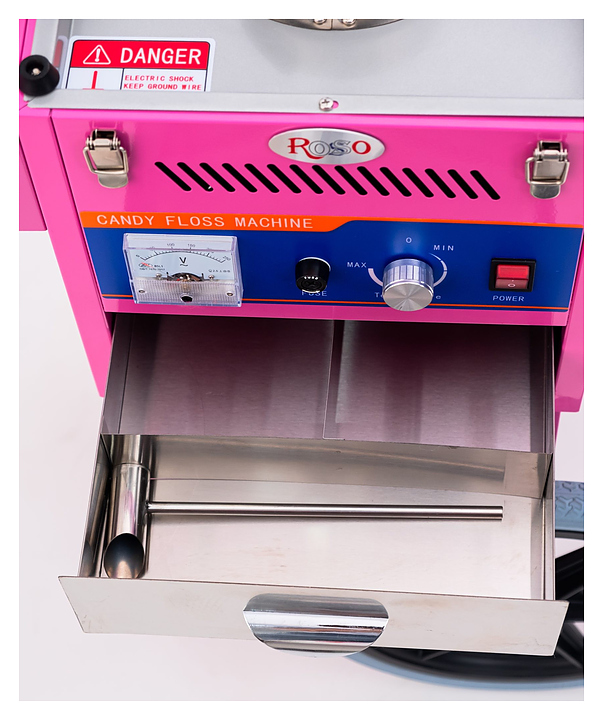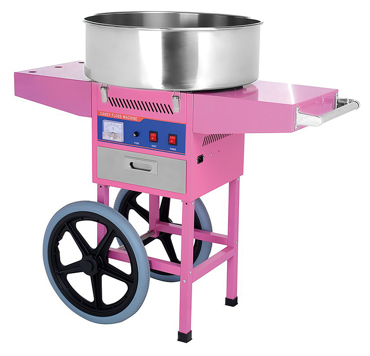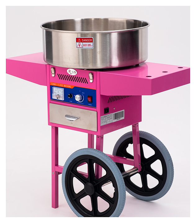 Аппарат для сахарной ваты Rosso HEC-03C используется на предприятиях общественного питания и торговли. Модель оснащена рабочей головкой с ТЭНом, термостатом, вольтметром, выдвижным ящиком для принадлежностей и мобильной тележкой для удобства передвижения. Чаша-ловитель выполнена из нержавеющей стали. Купол в комплект поставки не входит и приобретается отдельно. Дополнительные характеристики: