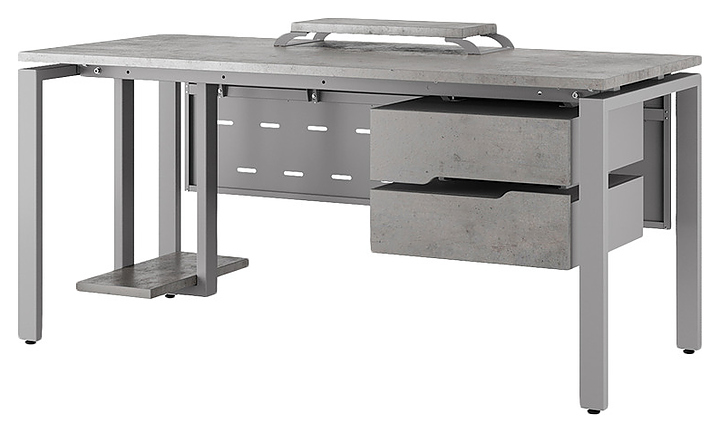 Офисный стол Кобор P-80/70 aluminum/chicago используется в офисных помещениях и кабинетах руководителей. Модель оснащена П-образными опорами. Каркас выполнен из металла, выкрашенного в цвет алюминиевый металлик (RAL9006), столешница – из ламинированной древесно-стружечной плиты (ЛДСП) цвета бетон чикаго (F186 ST9). Опции (заказываются отдельно):
