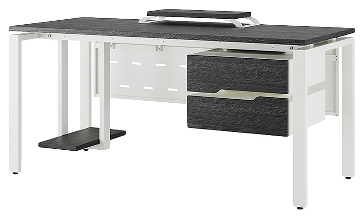 Офисный стол Кобор P-80/70 white/glazed используется в офисных помещениях и кабинетах руководителей. Модель оснащена П-образными опорами. Каркас выполнен из металла, выкрашенного в цвет белый муар (RAL9016), столешница – из ламинированной древесно-стружечной плиты (ЛДСП) цвета черный дуб (H3178 ST37). Опции (заказываются отдельно):