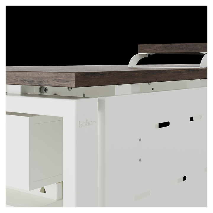 Офисный стол Кобор P-80/60 white/charlston используется в офисных помещениях и кабинетах руководителей. Модель оснащена П-образными опорами. Каркас выполнен из металла, выкрашенного в цвет белый муар (RAL9016), столешница – из ламинированной древесно-стружечной плиты (ЛДСП) цвета дуб чарльстон (H3154 ST36). Опции (заказываются отдельно):