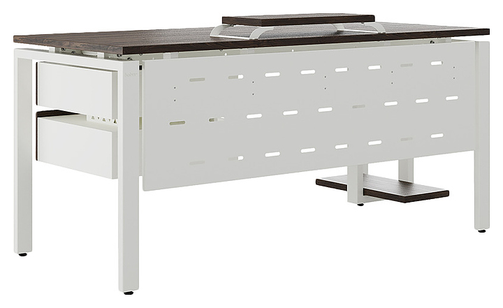 Офисный стол Кобор P-140/60 white/charlston используется в офисных помещениях и кабинетах руководителей. Модель оснащена П-образными опорами. Каркас выполнен из металла, выкрашенного в цвет белый муар (RAL9016), столешница – из ламинированной древесно-стружечной плиты (ЛДСП) цвета дуб чарльстон (H3154 ST36). Опции (заказываются отдельно):