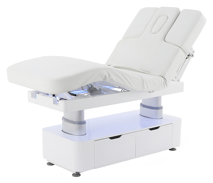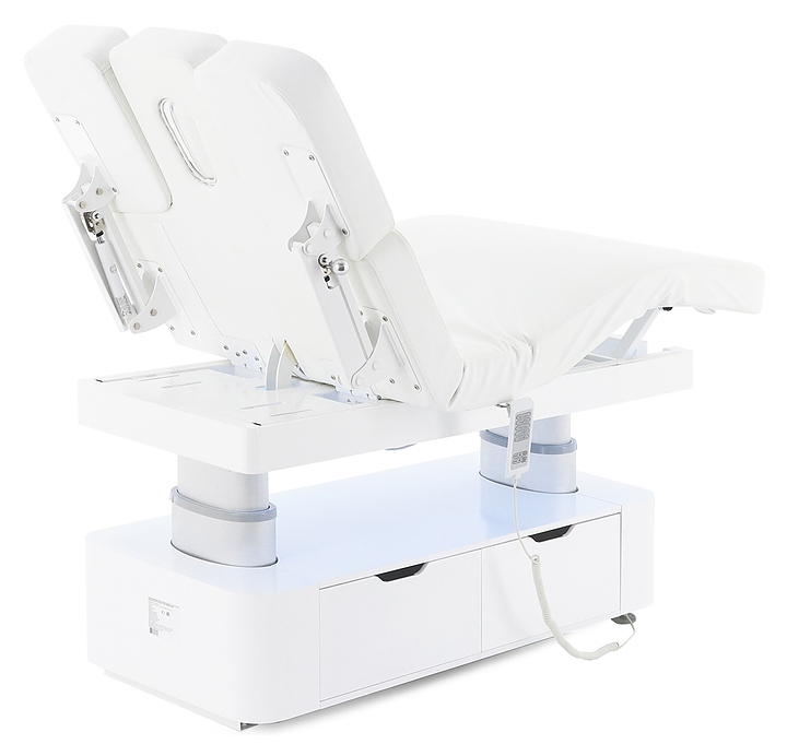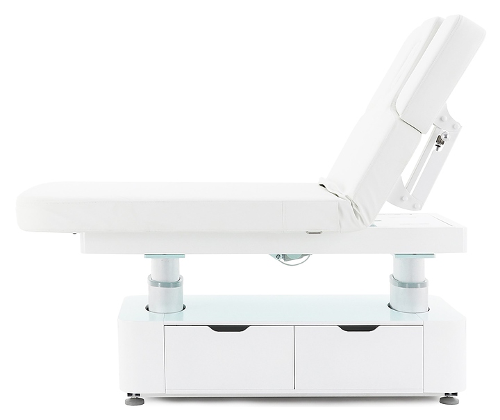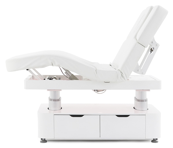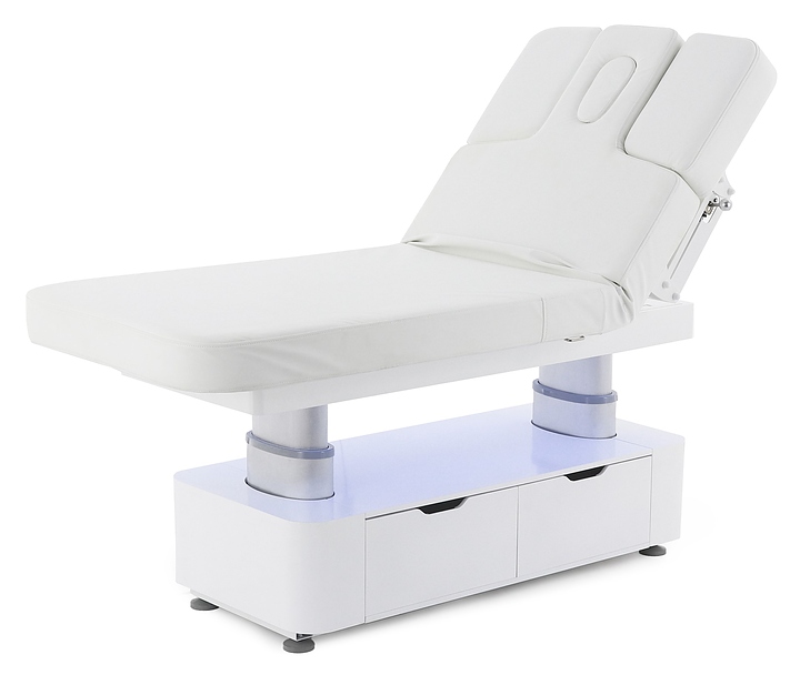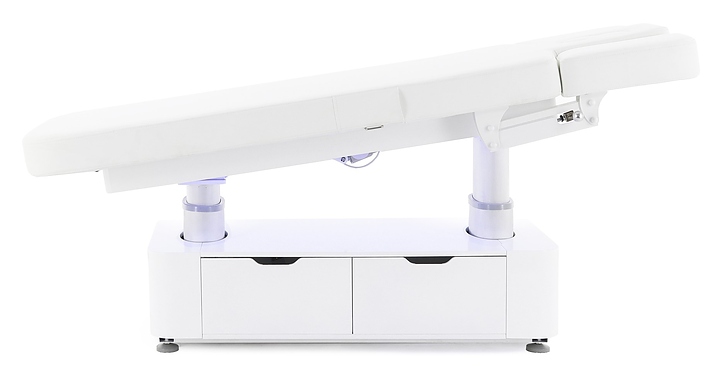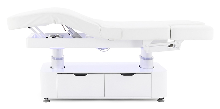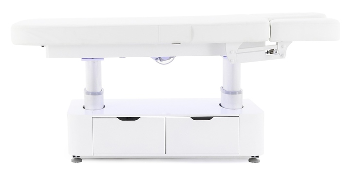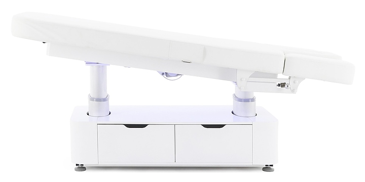 Электрический массажный стол Med-Mos ММКМ-2 (КО-157Д) с РУ используется в массажных кабинетах, массажных салонах, в домашних условиях и в учреждениях здравоохранения для проведения специалистом массажных, мануальных и лечебно-гимнастических процедур, лечения и профилактики различных заболеваний опорно-двигательного аппарата. Модель оснащена 4 моторами, 2 выдвижными ящиками, 2 пультами управления, декоративной подсветкой, люверсом, заглушкой люверса и подлокотниками. Рама и основание выполнены из стальных профильных труб, толстолистовой стали, покрытой ударопрочной эпоксидной эмалью, и окрашенного МДФ, наполнитель - из поролона, верхнее покрытие - из полиуретановой кожи. Стол поставляется с регистрационным удостоверением Минздрава РФ. Особенности: