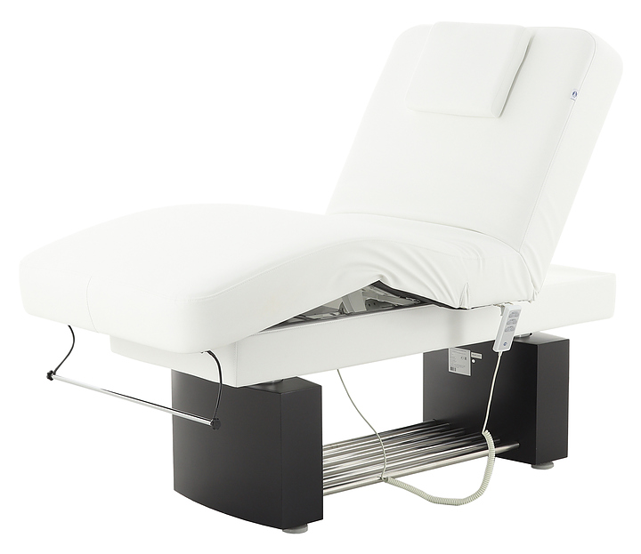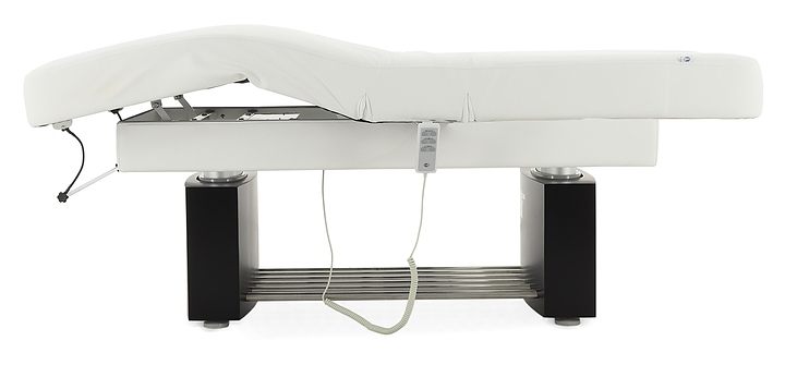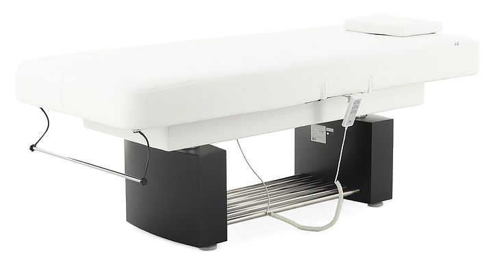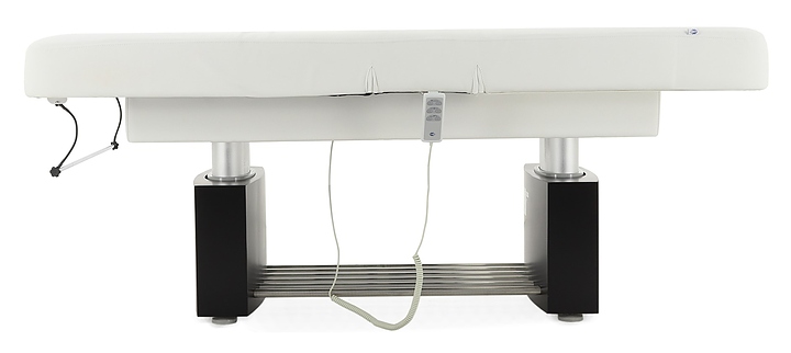 Электрический массажный стол Med-Mos ММКМ-2 (КО-160Д) с РУ используется в массажных кабинетах, массажных салонах, в домашних условиях и в учреждениях здравоохранения для проведения специалистом массажных, мануальных и лечебно-гимнастических процедур, лечения и профилактики различных заболеваний опорно-двигательного аппарата. Модель оснащена 3 моторами, пультом управления, подушкой-заглушкой люверса, мягкой подушкой для лица и держателем для полотенец. Рама и основание выполнены из стальных профильных труб, покрытых ударопрочной эпоксидной эмалью, декоративные накладки несущей рамы и привода подъема ложа - из алюминиевого листа и окрашенных панелей МДФ, наполнитель - из эластичного поролона, верхнее покрытие - ПУ «микрогрув» кожи. Стол поставляется с регистрационным удостоверением Минздрава РФ. Особенности:
