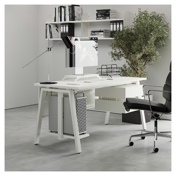 Офисный стол Кобор A-180/70 white/premium используется в офисных помещениях и кабинетах руководителей. Модель оснащена A-образными опорами. Каркас выполнен из металла, выкрашенного в цвет белый муар (RAL9016), столешница – из ламинированной древесно-стружечной плиты (ЛДСП) цвета белый премиум (W1000 ST9). Опции (заказываются отдельно):