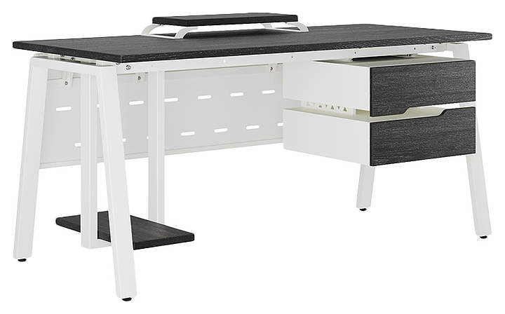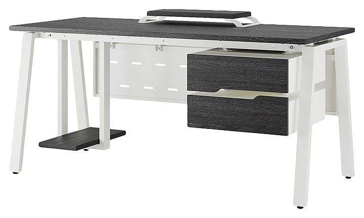 Офисный стол Кобор A-80/60 white/glazed используется в офисных помещениях и кабинетах руководителей. Модель оснащена A-образными опорами. Каркас выполнен из металла, выкрашенного в цвет белый муар (RAL9016), столешница – из ламинированной древесно-стружечной плиты (ЛДСП) цвета черный дуб (H3178 ST37). Опции (заказываются отдельно):