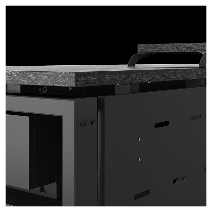 Офисный стол Кобор AB-100/80 black/glazed используется в офисных помещениях и кабинетах руководителей. Модель оснащена A-образными опорами со скошенными фронтальными сегментами. Каркас выполнен из металла, выкрашенного в цвет черный муар (RAL9005), столешница – из ламинированной древесно-стружечной плиты (ЛДСП) цвета черный дуб (H3178 ST37). Опции (заказываются отдельно):
