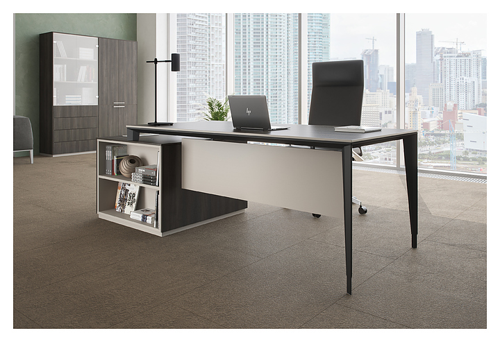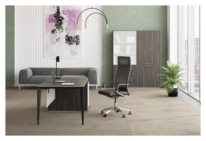 Комбинированный шкаф для документов Norden NZ-0301+NZ-0312.BT.BT используется в офисных помещениях в составе линейки кабинета руководителя Атлас или отдельно. Модель состоит из 2 корпусов под общим топом, оснащена 4 выдвижными ящиками, 6 распашными дверцами и общим подиумом с регулируемыми по высоте опорами. Корпус, фасады ящиков, дверцы правой секции и подиум выполнены из ЛДСП производства компании EGGER, декоративные боковые и верхняя панели - из МДФ производства компании EGGER, дверцы левой секции - из закаленного матового стекла, ручки - из металла с покрытием "матовый хром". Особенности: