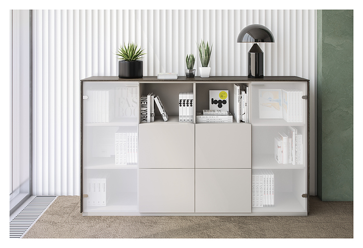 Шкаф для документов средний NORDEN NZ-0336.BT.GS матовое стекло