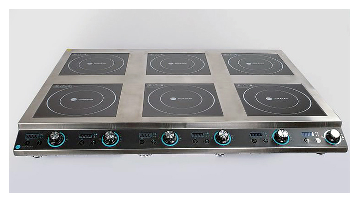 Индукционная плита Hurakan HKN-ICF35DX4 предназначена для приготовления блюд в наплитной посуде на предприятиях общественного питания и торговли. Индукционная конфорка включается сразу после установки на нее посуды и выключается, когда ее убирают, за счет этого сокращается энергопотребление и улучшается микроклимат в кухонном помещении. Модель оснащена цифровой панелью управления и 6 активными джойстиками. Корпус выполнен из нержавеющей стали. Рекомендуется использовать специальную посуду из материала с подходящими характеристиками, который бы эффективно поглощал энергию магнитного поля. Особенности: