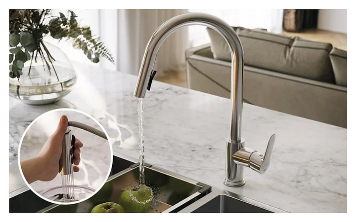 Смеситель IDDIS Cuba CUBSBP0i05 предназначен для подачи горячей и холодной воды в кухонных помещениях. Модель оснащена выдвижным изливом и керамическим картриджем, обеспечивающим плавный ход рычага смесителя, контроль и точность при выборе напора и температуры воды. Корпус выполнен из нержавеющей стали, отличающейся прочностью, долговечностью и устойчивостью к коррозии. Особенности: