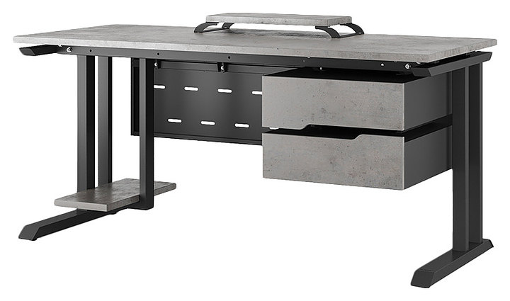 Офисный стол Кобор L1-80/60 black/chicago используется в офисных помещениях и кабинетах руководителей. Модель оснащена L-образными опорами. Каркас выполнен из металла, выкрашенного в цвет черный муар (RAL9005), столешница – из ламинированной древесно-стружечной плиты (ЛДСП) цвета бетон чикаго (F186 ST9). Опции (заказываются отдельно):