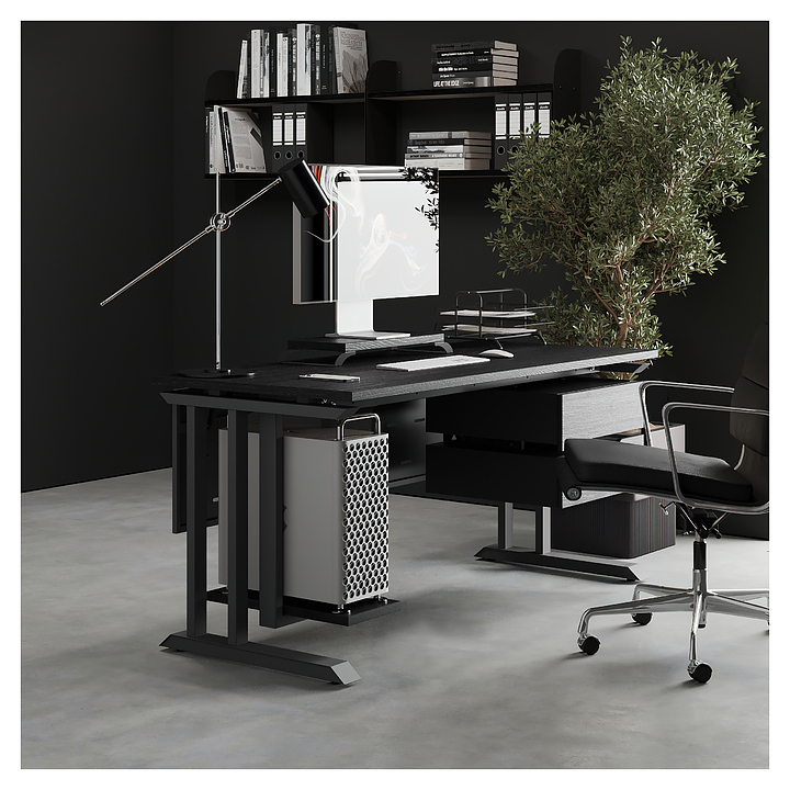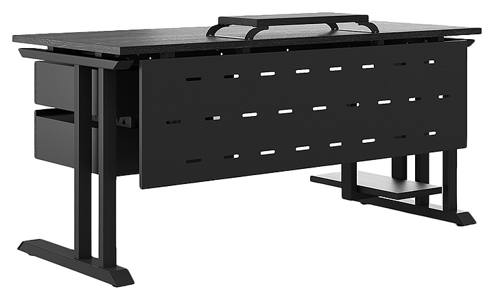 Офисный стол Кобор L1-140/60 black/glazed используется в офисных помещениях и кабинетах руководителей. Модель оснащена L-образными опорами. Каркас выполнен из металла, выкрашенного в цвет черный муар (RAL9005), столешница – из ламинированной древесно-стружечной плиты (ЛДСП) цвета черный дуб (H3178 ST37). Опции (заказываются отдельно):