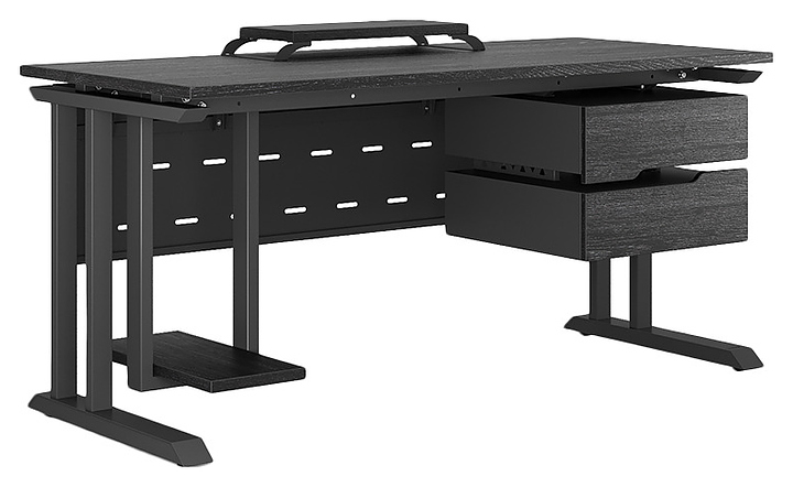Офисный стол Кобор L1-180/80 black/glazed используется в офисных помещениях и кабинетах руководителей. Модель оснащена L-образными опорами. Каркас выполнен из металла, выкрашенного в цвет черный муар (RAL9005), столешница – из ламинированной древесно-стружечной плиты (ЛДСП) цвета черный дуб (H3178 ST37). Опции (заказываются отдельно):