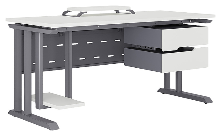 Офисный стол Кобор L1-160/60 graphite/premium используется в офисных помещениях и кабинетах руководителей. Модель оснащена L-образными опорами. Каркас выполнен из металла, выкрашенного в цвет графит муар (RAL7024), столешница – из ламинированной древесно-стружечной плиты (ЛДСП) цвета белый премиум (W1000 ST9). Опции (заказываются отдельно):