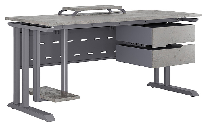 Офисный стол Кобор L1-140/60 graphite/chicagoиспользуется в офисных помещениях и кабинетах руководителей. Модель оснащена L-образными опорами. Каркас выполнен из металла, выкрашенного в цвет графит муар (RAL7024), столешница – из ламинированной древесно-стружечной плиты (ЛДСП) цвета бетон чикаго (F186 ST9). Опции (заказываются отдельно):