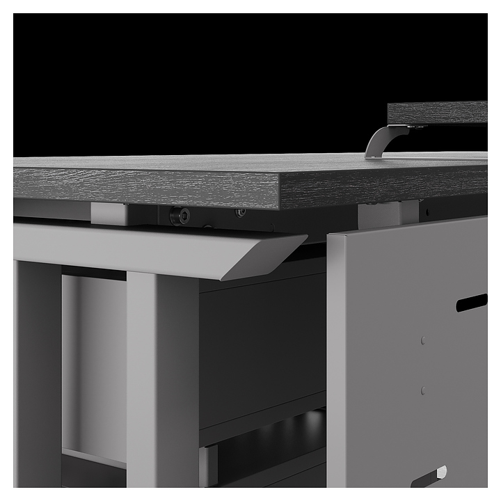 Офисный стол Кобор L1-120/70 aluminum/glazed используется в офисных помещениях и кабинетах руководителей. Модель оснащена L-образными опорами. Каркас выполнен из металла, выкрашенного в цвет алюминиевый металлик (RAL9006), столешница – из ламинированной древесно-стружечной плиты (ЛДСП) цвета черный дуб (H3178 ST37).
