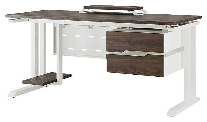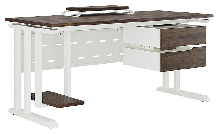 Офисный стол Кобор L1-140/60 white/charlston используется в офисных помещениях и кабинетах руководителей. Модель оснащена L-образными опорами. Каркас выполнен из металла, выкрашенного в цвет белый муар (RAL9016), столешница – из ламинированной древесно-стружечной плиты (ЛДСП) цвета дуб чарльстон (H3154 ST36). Опции (заказываются отдельно):