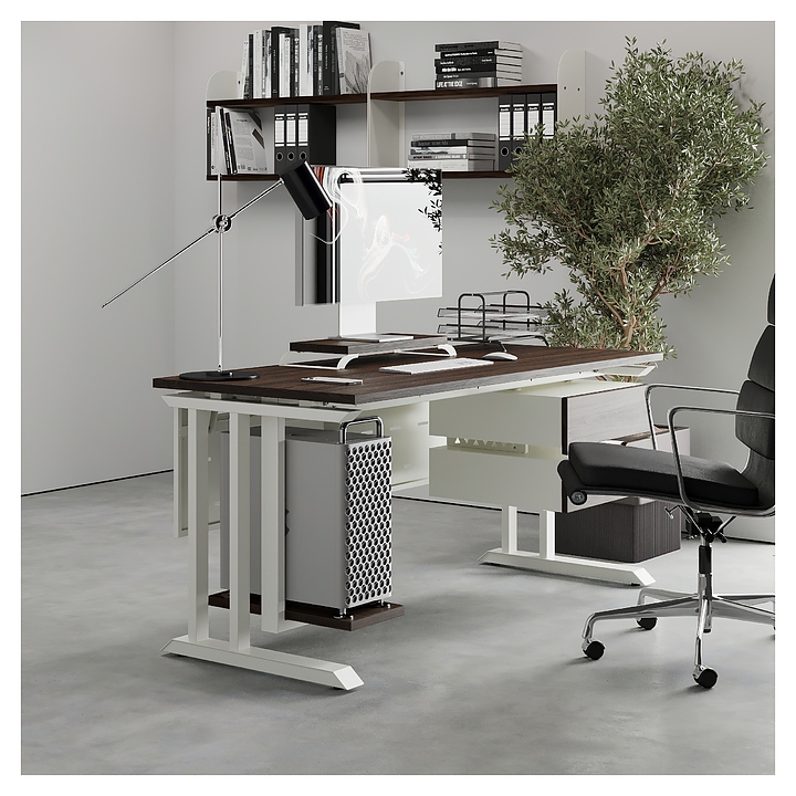 Офисный стол Кобор L1-80/80 white/charlston используется в офисных помещениях и кабинетах руководителей. Модель оснащена L-образными опорами. Каркас выполнен из металла, выкрашенного в цвет белый муар (RAL9016), столешница – из ламинированной древесно-стружечной плиты (ЛДСП) цвета дуб чарльстон (H3154 ST36). Опции (заказываются отдельно):