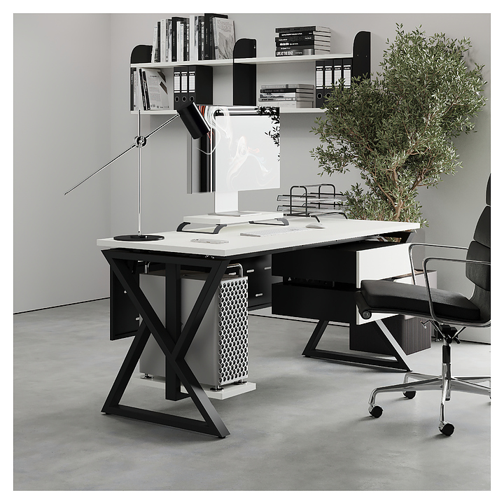 Офисный стол Кобор W-80/80 black/premium используется в офисных помещениях и кабинетах руководителей. Модель оснащена W-образными опорами. Каркас выполнен из металла, выкрашенного в цвет черный муар (RAL9005), столешница – из ламинированной древесно-стружечной плиты (ЛДСП) цвета белый премиум (W1000 S9). Опции (заказываются отдельно):