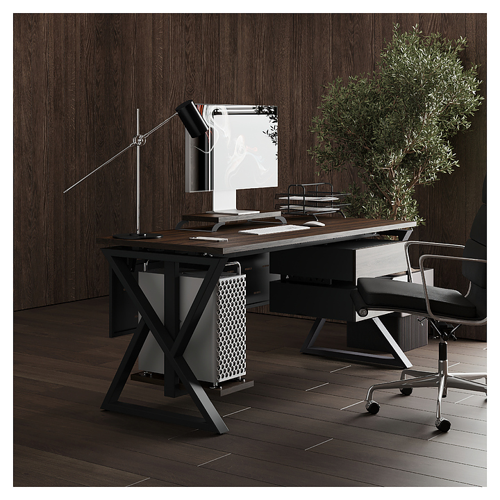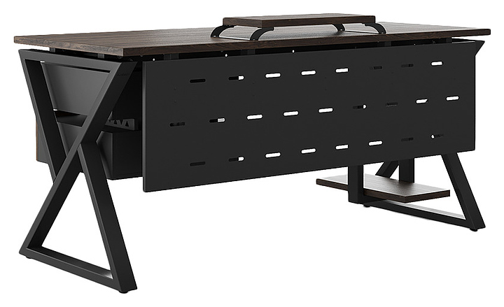 Офисный стол Кобор W-160/70 black/charlston используется в офисных помещениях и кабинетах руководителей. Модель оснащена W-образными опорами. Каркас выполнен из металла, выкрашенного в цвет черный муар (RAL9005), столешница – из ламинированной древесно-стружечной плиты (ЛДСП) цвета дуб чарльстон (H3154 ST36). Опции (заказываются отдельно):