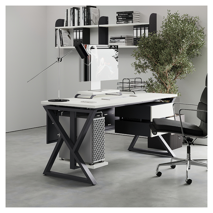 Офисный стол Кобор W-100/60 graphite/premium используется в офисных помещениях и кабинетах руководителей. Модель оснащена W-образными опорами. Каркас выполнен из металла, выкрашенного в цвет графит муар (RAL7024), столешница – из ламинированной древесно-стружечной плиты (ЛДСП) цвета белый премиум (W1000 ST9). Опции (заказываются отдельно):