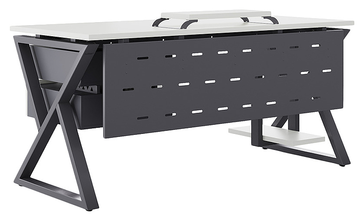 Офисный стол Кобор W-100/70 graphite/premium используется в офисных помещениях и кабинетах руководителей. Модель оснащена W-образными опорами. Каркас выполнен из металла, выкрашенного в цвет графит муар (RAL7024), столешница – из ламинированной древесно-стружечной плиты (ЛДСП) цвета белый премиум (W1000 ST9). Опции (заказываются отдельно):