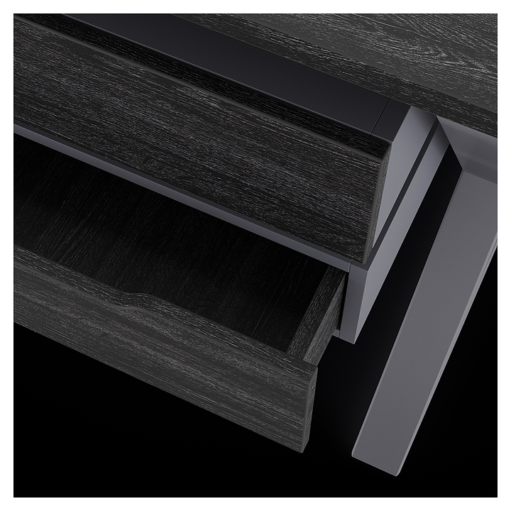 Офисный стол Кобор W-120/60 graphite/glazed используется в офисных помещениях и кабинетах руководителей. Модель оснащена W-образными опорами. Каркас выполнен из металла, выкрашенного в цвет графит муар (RAL7024), столешница – из ламинированной древесно-стружечной плиты (ЛДСП) цвета черный дуб (H3178 ST37). Опции (заказываются отдельно):