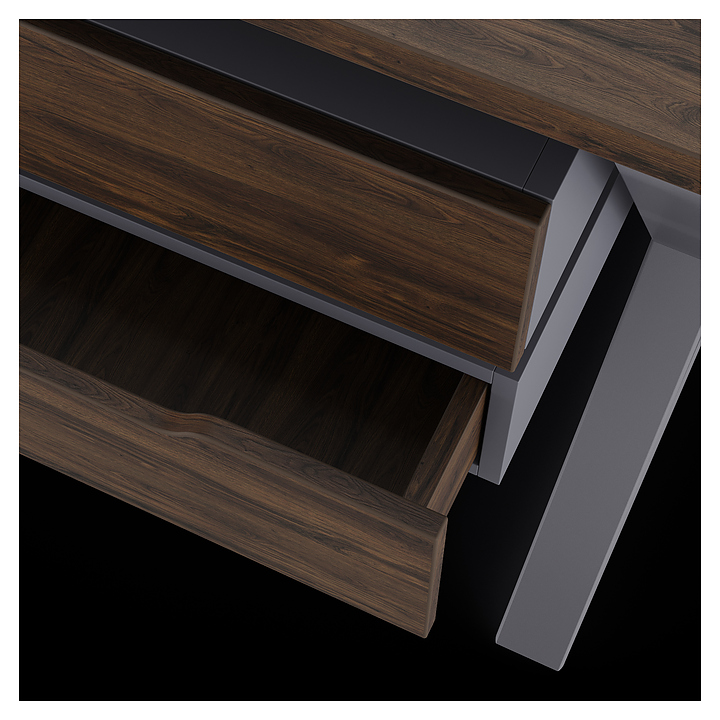 Офисный стол Кобор W-80/70 graphite/charlston используется в офисных помещениях и кабинетах руководителей. Модель оснащена W-образными опорами. Каркас выполнен из металла, выкрашенного в цвет графит муар (RAL7024), столешница – из ламинированной древесно-стружечной плиты (ЛДСП) цвета дуб чарльстон (H3154 ST36). Опции (заказываются отдельно):