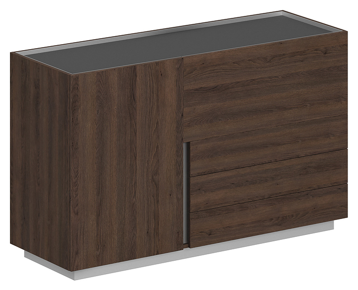 Шкаф для документов NORDEN OL-20-14.DT.DT.DT.R используется в офисных помещениях в составе линейки кабинета руководителя Оливер или отдельно. Модель оснащена 3 выдвижными ящиками и 2 распашными фасадами. Корпус, ящики, подиум, декоративные стенки и фасады выполнены из ЛДСП производства компании EGGER, верхние торцы боковых и задней декоративных стенок - в кромке ПВХ, верхняя, выступающая над топом, часть боковин и задней стенки отделана декоративными алюминиевыми планками. Особенности: