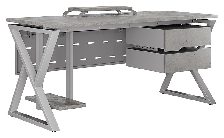 Офисный стол Кобор W-80/70 aluminum/chicago используется в офисных помещениях и кабинетах руководителей. Модель оснащена W-образными опорами. Каркас выполнен из металла, выкрашенного в цвет алюминиевый металлик (RAL9006), столешница – из ламинированной древесно-стружечной плиты (ЛДСП) цвета бетон чикаго (F186 ST9). Опции (заказываются отдельно):