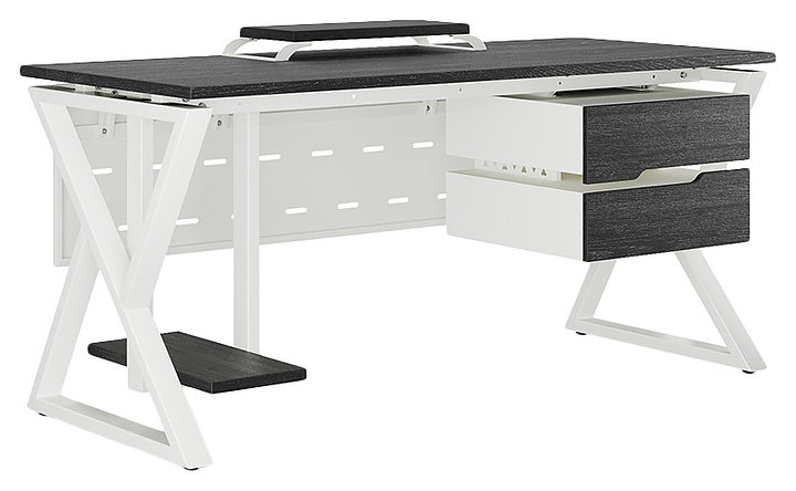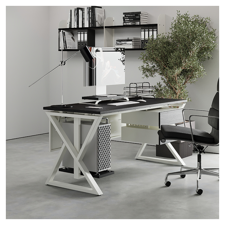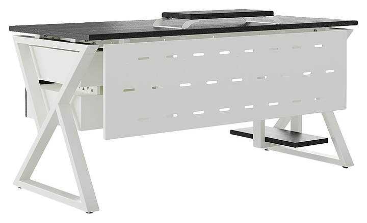Офисный стол Кобор W-140/60 white/glazed используется в офисных помещениях и кабинетах руководителей. Модель оснащена W-образными опорами. Каркас выполнен из металла, выкрашенного в цвет белый муар (RAL9016), столешница – из ламинированной древесно-стружечной плиты (ЛДСП) цвета черный дуб (H3178 ST37). Опции (заказываются отдельно):