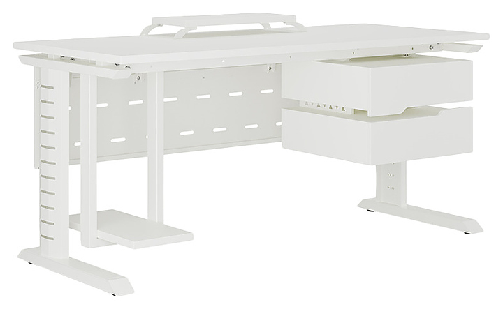 Офисный стол Кобор L2-80/60 white/premium используется в офисных помещениях и кабинетах руководителей. Модель оснащена L-образными опорами с декоративными вставками на боковинах. Каркас выполнен из металла, выкрашенного в цвет белый муар (RAL9016), столешница – из ламинированной древесно-стружечной плиты (ЛДСП) цвета белый премиум (W1000 ST9). Опции (заказываются отдельно):