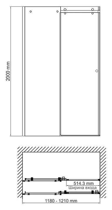 Дверь душевая Wasserkraft Vils 56R05 120х200 см, в нишу, раздвижная, серебристый профиль