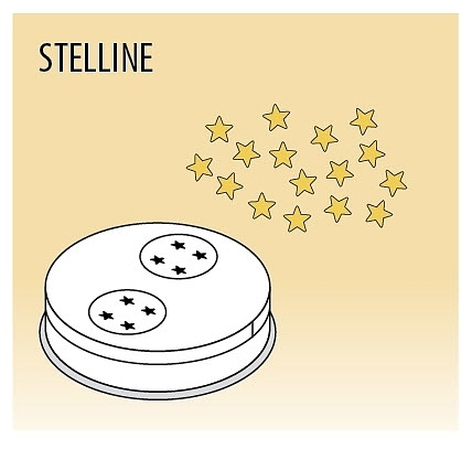 Насадка FIMAR ACTRMPF59 используется совместно с машинами для формирования пасты MPF 2,5, MPF 4, PF25E и PF40E для изготовления стеллине (Stelline) - в форме маленьких звёздочек. Характеристики: