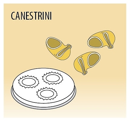 Насадка FIMAR ACTRMPF71 используется совместно с машинами для формирования пасты MPF 2,5, MPF 4, PF25E и PF40E для изготовления классических макаронных изделий "рожки" канестрини (Canestrini). Характеристики: