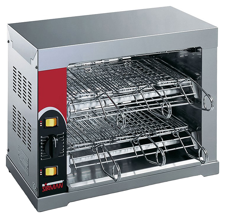 Тостер Sirman 12Q используется на предприятиях общественного питания и торговли для приготовления тостов, подогрева пиццы, полуфабрикатов и бутербродов, а также приготовления сосисок, гамбургеров, пресных лепешек "пьядина" и тостов с начинкой. Модель оснащена кварцевыми нагревательными элементами и удаляемой ванночкой для сбора остатков. В комплект поставки входят хромированные нержавеющие щипцы. Особенности: