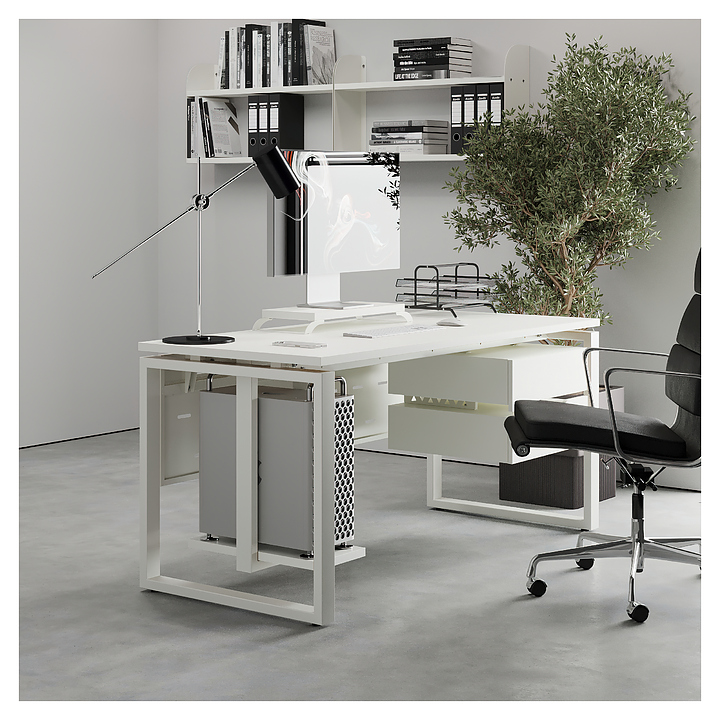 Офисный стол Кобор O1-140/60 white/premium используется в офисных помещениях и кабинетах руководителей. Модель оснащена O-образными опорами. Каркас выполнен из металла, выкрашенного в цвет белый муар (RAL9016), столешница – из ламинированной древесно-стружечной плиты (ЛДСП) цвета белый премиум (W1000 ST9). Опции (заказываются отдельно):