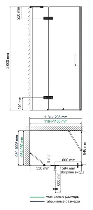 Уголок душевой Wasserkraft Aller 10H10L 120х100 см, левый, серебристый профиль
