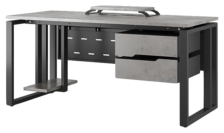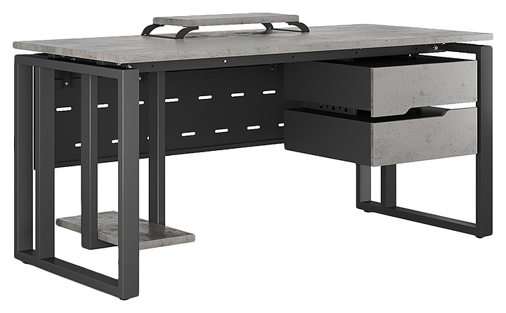 Офисный стол Кобор O2-80/60 black/chicago используется в офисных помещениях и кабинетах руководителей. Модель оснащена усиленными вертикальной балкой O-образными опорами. Каркас выполнен из металла, выкрашенного в цвет черный муар (RAL9005), столешница – из ламинированной древесно-стружечной плиты (ЛДСП) цвета бетон чикаго (F186 ST9). Опции (заказываются отдельно):