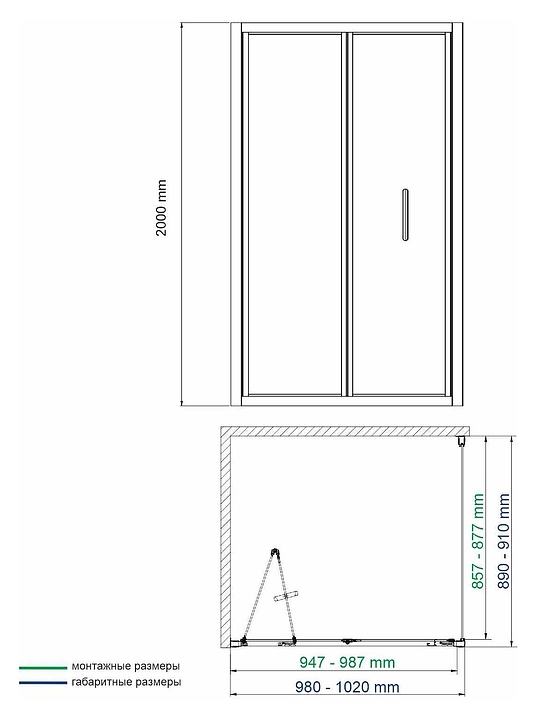 Уголок душевой Wasserkraft Weser 78F22 100х90 см, серебристый профиль