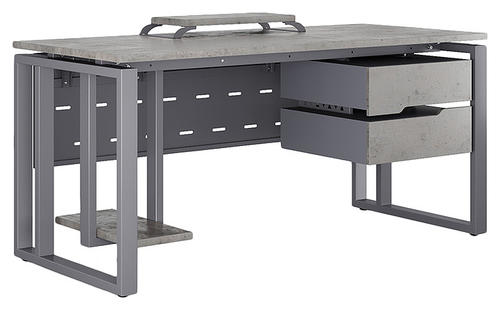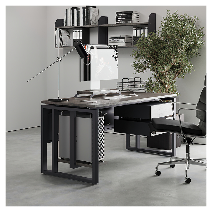 Офисный стол Кобор O2-80/60 graphite/chicago используется в офисных помещениях и кабинетах руководителей. Модель оснащена усиленными вертикальной балкой O-образными опорами. Каркас выполнен из металла, выкрашенного в цвет графит муар (RAL7024), столешница – из ламинированной древесно-стружечной плиты (ЛДСП) цвета бетон чикаго (F186 ST9). Опции (заказываются отдельно):