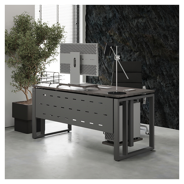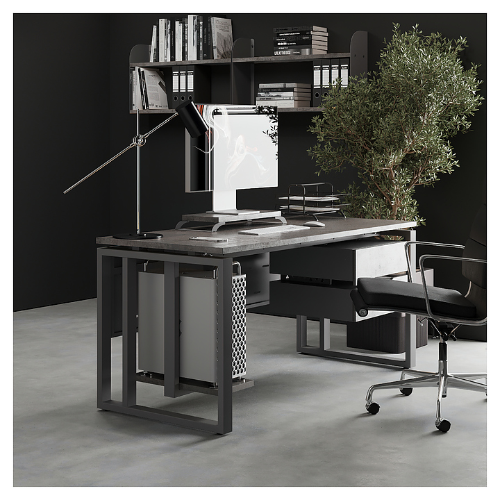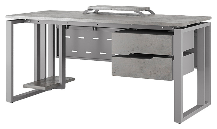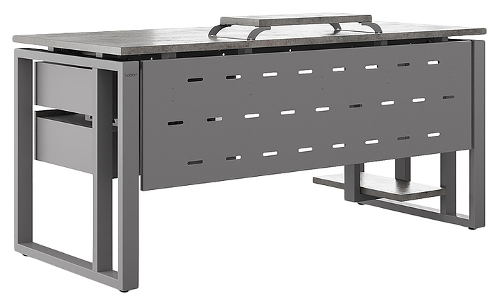 Офисный стол Кобор O2-80/60 aluminum/chicago используется в офисных помещениях и кабинетах руководителей. Модель оснащена усиленными вертикальной балкой O-образными опорами. Каркас выполнен из металла, выкрашенного в цвет алюминиевый металлик (RAL9006), столешница – из ламинированной древесно-стружечной плиты (ЛДСП) цвета бетон чикаго (F186 ST9). Опции (заказываются отдельно):