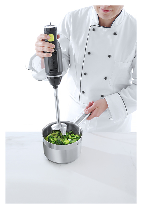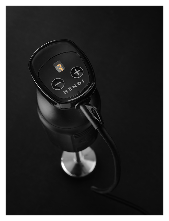 Погружной блендер HENDI 222157 предназначен для взбивания, смешивания, измельчения продуктов питания на предприятиях общественного питания и торговли, а также в домашних условиях. Модель оснащена съемной насадкой с ножом, LCD-дисплеем, отображающим текущую скорость оборотов, вентилляционным отверстием, кнопками включения / выключения и увеличения / уменьшения скорости оборотов и эргономичной ручкой. Корпус выполнен из ABS-пластика, насадка - из нержавеющей стали, нож - из нержавеющей стали с титаном. Дополнительные характеристики: