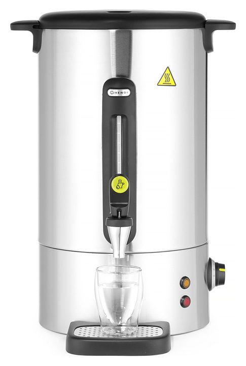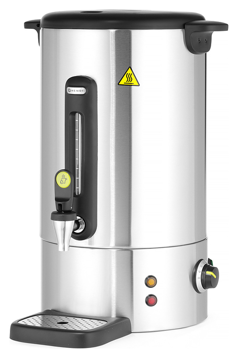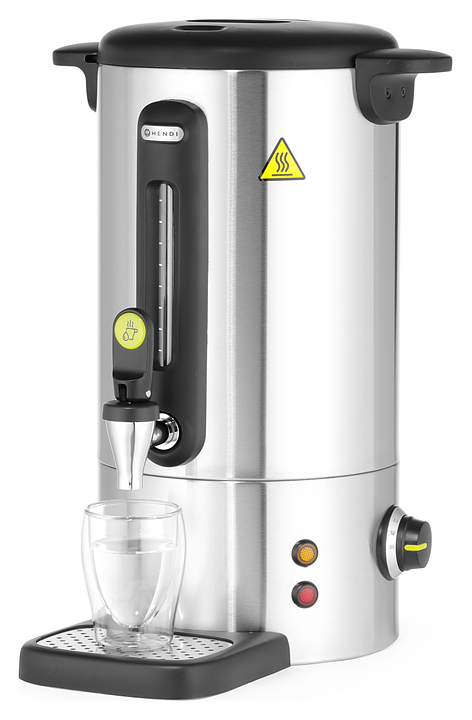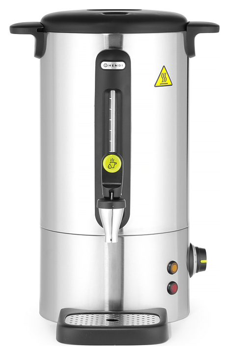 Кипятильник HENDI 211410 предназначен для нагрева и кипячения воды на предприятиях общественного питания и торговли. Модель оснащена световым индикатором завершения нагрева и необходимости удаления накипи, ручками и крышкой. Корпус выполнен из нержавеющей стали, ручки - из полипропиллена. В комплект поставки входят съемный магнитный поддон для сбора капель, который может быть удален без подъема и разлива. Особенности:
