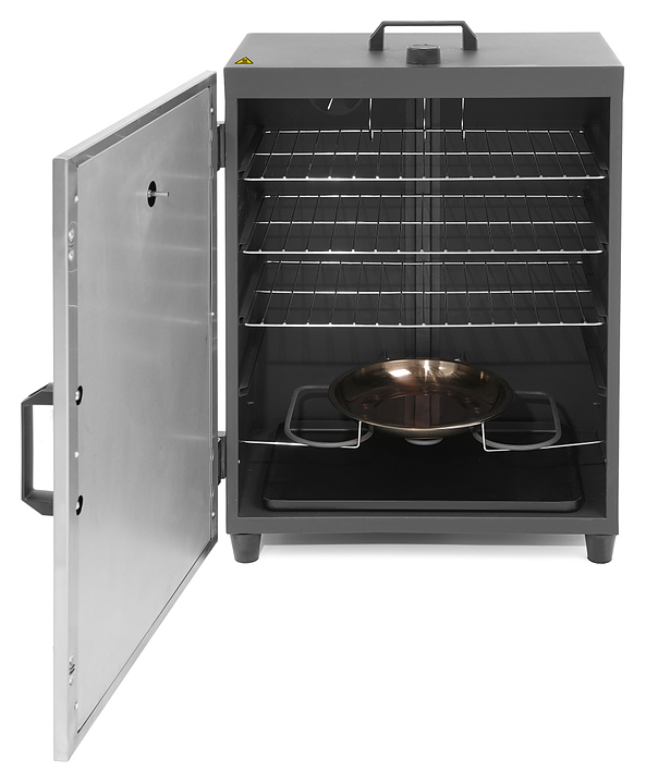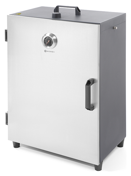 Коптильня HENDI 238486 используется на предприятиях общественного питания и торговли для горячего копчения мясных и рыбных продуктов. Модель оснащена термостатом для регулировки температуры, встроенным в дверь термометром, вентилляционной решеткой в задней части изделия, двойными изолированными дверями с магнитом и устойчивыми ножками. Изделие выполнено из нержавеющей стали В комплект поставки входят 3 решетки и 3 крючка для мяса. Дополнительные характеристики: