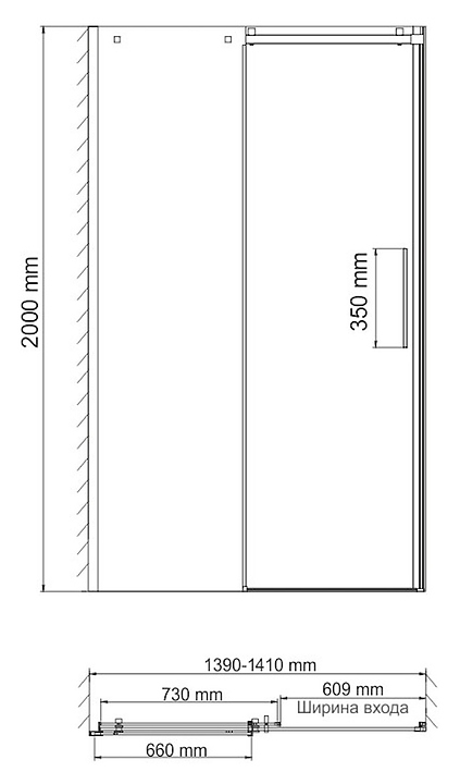 Дверь душевая Wasserkraft Alme 15R31 140х200 см, в нишу, раздвижная, серебристый профиль