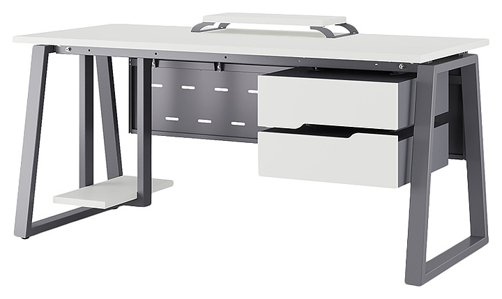 Офисный стол Кобор TR-80/60 graphite/premium используется в офисных помещениях и кабинетах руководителей. Модель оснащена опорами в форме трапеции. Каркас выполнен из металла, выкрашенного в цвет графит муар (RAL7024), столешница – из ламинированной древесно-стружечной плиты (ЛДСП) цвета белый премиум (W1000 ST9). Опции (заказываются отдельно):